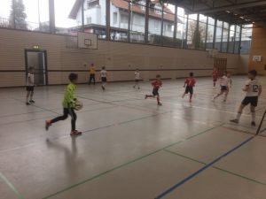 Nun ging es gegen den Angstgegner aus Gundelfingen-Wildtal. Hier ging man beim letzten Hallenturnier in Müllheim mit 3:1 als Verlierer vom Platz. Unsere Mannschaft begann sehr nervös und aufgeregt, erarbeitete sich aber ein paar gute Torchancen. Diese blieben jedoch ungenutzt. Durch einen Fernschuss ging der Gegner in der letzten Minute mit 1:0 als Sieger vom Platz.